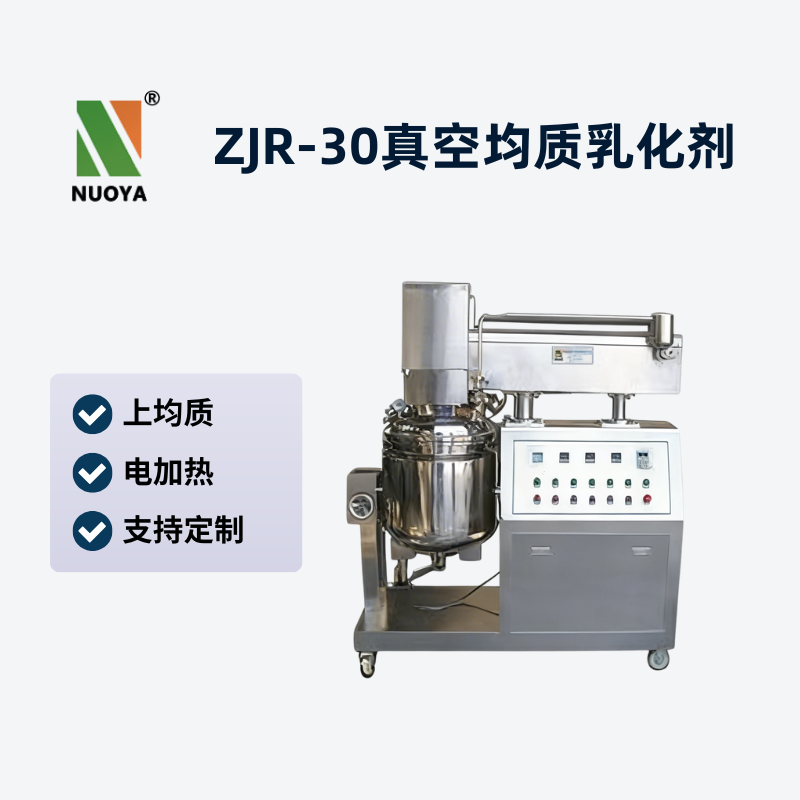 ZJR-30真空均质乳化机料锅盖为自动升降式,水、油锅中的物料通过输送管道可在真空状态下直接进入乳化锅,ZJR-30真空均质乳化机出料方式为乳化锅翻转式以及锅底阀放料式等,通过电热管对锅夹层内的导热介质进行加热来实现对物料的加热,加热温度任意设定,自动控制。在夹层内接入冷却液即可对物料进行冷却,操作简单、方便、夹层外设有保温层。该高剪切乳化机的均质系统和搅拌系统可分开使用,也可同时使用。物料的微粒化、乳化、混合、调匀、分散等可于短时间内完成。与物料接触部分采用**不锈钢(常用304,医用316L)内表面镜面抛光,真空搅拌装置卫生清洁,采用符合GMP规范的卫生标准制造,是客户理想的膏霜生产设备。