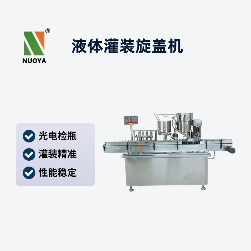 液体灌装旋盖机采用自吸装置进行吸料、灌装。同时,通过电磁震动盘进行上盖,专用电机旋盖,确保盖子旋固可靠。该灌装旋盖机采用无级调速,光电控制做到有瓶则灌,无瓶不灌。适用一般液体和瞬间胶的灌装与旋盖。